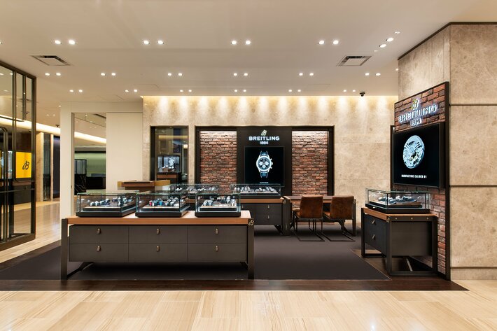 東京の中心・銀座四丁目交差点に位置しており、銀座駅直結の抜群のアクセスの良さを誇る銀座三越。その新館4階に、ブライトリング ブティック 銀座三越がオープン。全世界のブライトリング ブティック同様に、ブライトリング独自の最新のディスプレイを導入したブリック調の店内には、日本限定モデルをはじめ圧倒的な品揃えを誇ります。ブライトリング社による研修を受けた経験豊かなスタッフが在籍し、時計の専門知識だけでなく高いホスピタリティを併せ持つスペシャリストがお客様をお迎えいたします。
