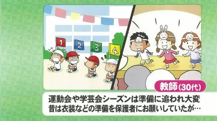SNSでは「行事そのものを簡素化したらいい」などと教師の負担を軽減するための提案が多くあがり、「このままでは先生になりたい人が減ってしまう」という不安の声も見られた。