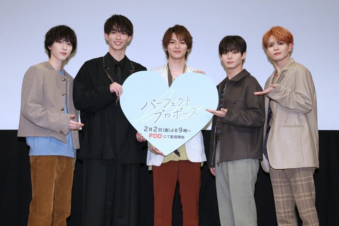 FODで配信されるドラマ『パーフェクトプロポーズ』の完成披露試写会が1月25日に行われ、W主演を務める金子隼也さん、野村康太さん、主題歌を担当するOCTPATHの太田駿静さん、栗田航兵さん、四谷真佑さんが登壇しました。