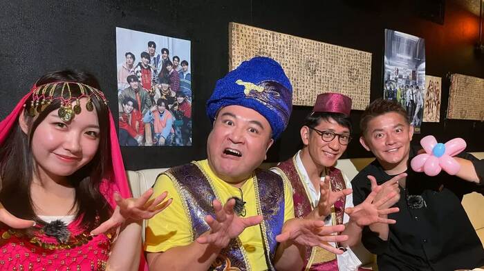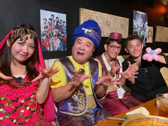 アンタッチャブル扮する、ザキヤ魔人(山崎弘也さん)とシバタン(柴田英嗣さん)が繰り広げる、ハイカロリーグルメバラエティ『腹ペコ魔人のグルメな魔法 脂過多ブラ』(10月26日放送/東海テレビ)。