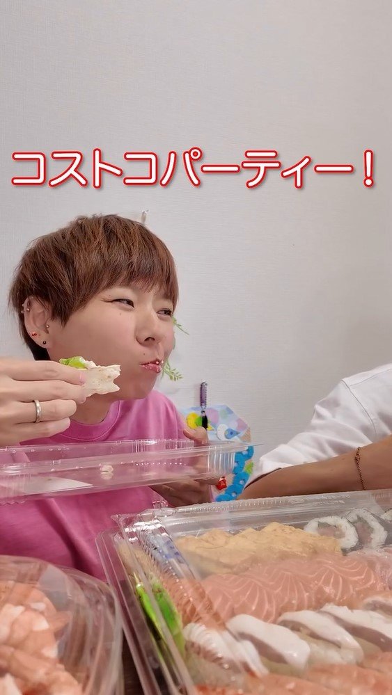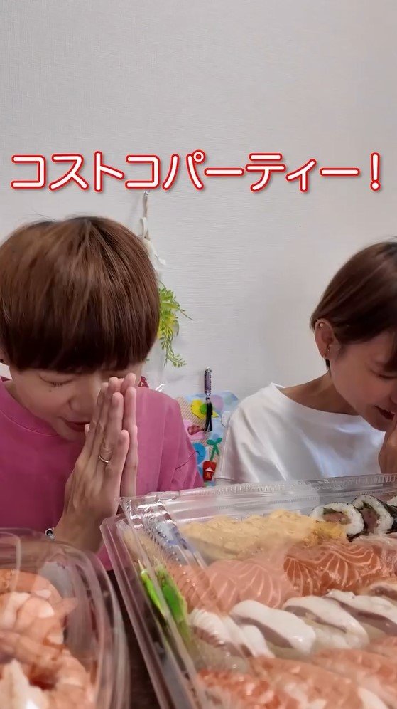 かこさんは今回の投稿で「コストコパーティー」とつづり、妹のあこさんとの食事を楽しむ様子を公開しています。