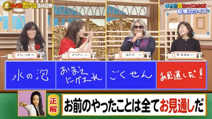 正解は「お前のやったことは全てお見通しだ」。岡さんが見事正解!