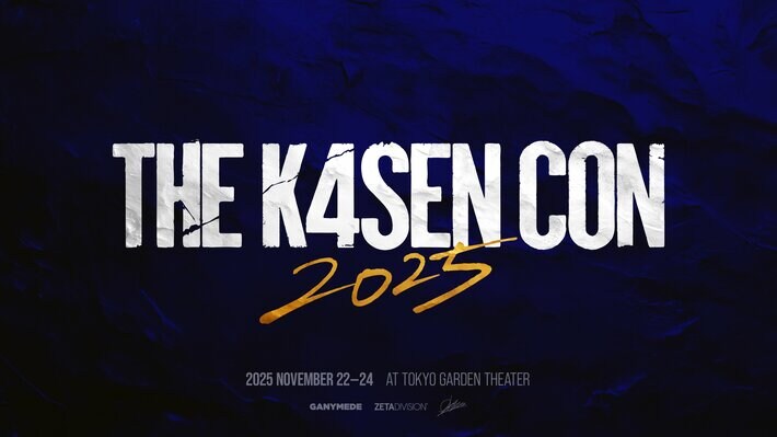 GANYMEDE株式会社(本社:東京都港区、代表取締役:西原 大輔)が運営するプロeスポーツチーム「ZETA DIVISION」所属ストリーマー k4sen が主催する3日間のイベント、「The k4sen Con 2025」を、2025年11月22日(土)から11月24日(月・祝)まで、東京ガーデンシアターにて開催いたします。