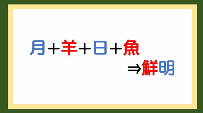 「月+羊+日+魚」。漢字を足して二字熟語を作成してください。