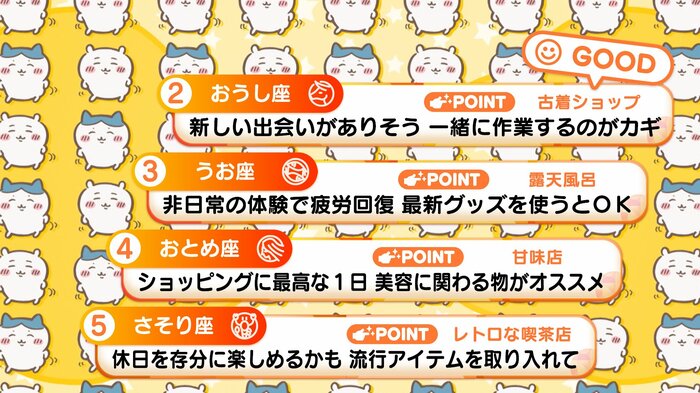 『めざましテレビ』で放送中の「ちいかわ占い」 テレビ放送がない日はお休みで、月~土:朝7時以降に更新予定です。