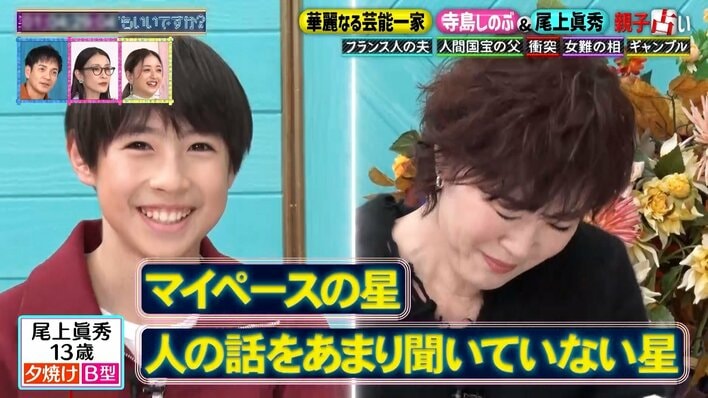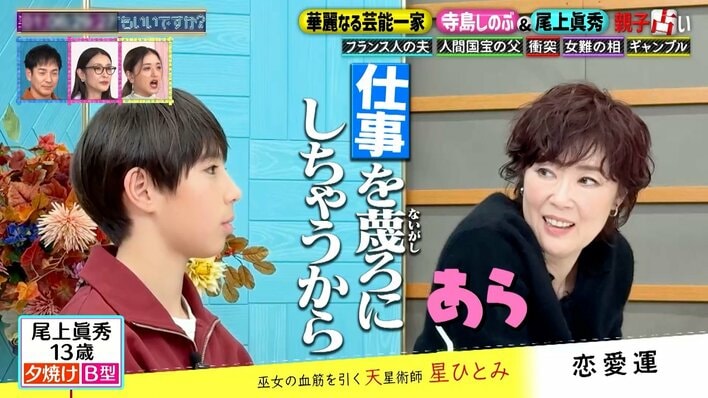 11月23日放送の『突然ですが占ってもいいですか?』は、寺島しのぶさん&尾上眞秀さん親子が星ひとみさんに占われました。