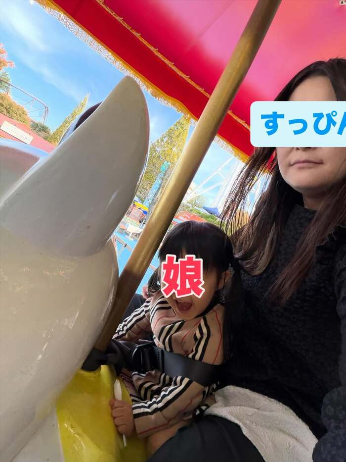 そんなギャル曽根さんは、今回の投稿で「娘が乗り物デビューしました。」と、2歳になったばかりの次女と2人で遊園地で遊ぶ様子を投稿しました。