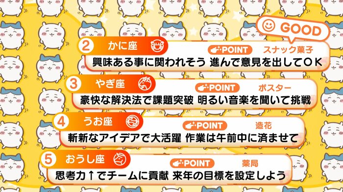 『めざましテレビ』で放送中の「ちいかわ占い」 テレビ放送がない日はお休みで、月~土:朝7時以降に更新予定です。