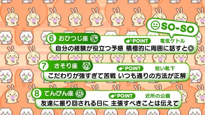 『めざましテレビ』で放送中の「ちいかわ占い」 テレビ放送がない日はお休みで、月~土:朝7時以降に更新予定です。