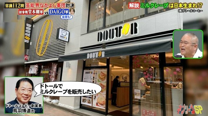 その美味しさに気付き、日本中に広めたのがドトールコーヒーの創業者である鳥羽博道さん。自分の店でも「ミルクレープ」を販売したいと1990年代中頃からドトールコーヒーで発売を開始し、日本中でその人気に火が点きました。現在では、年間300万食も売れているのだそうです。