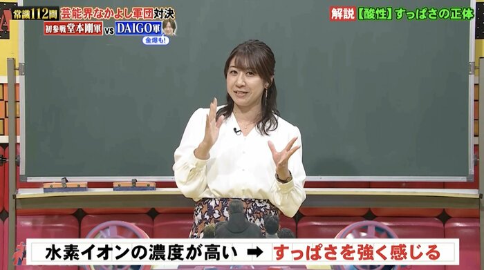 化学担当の立脇香奈先生は、「酸性」にまつわる問題で「酸っぱさ」の正体を紹介しました。
