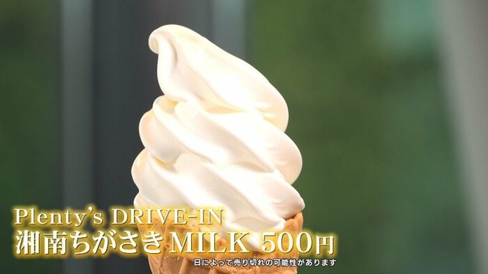 まずは、ザ・道の駅ともいえる「ソフトクリーム」。茅ケ崎市内の牧場で搾った生乳を100%使用した濃厚な一品となっています!