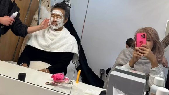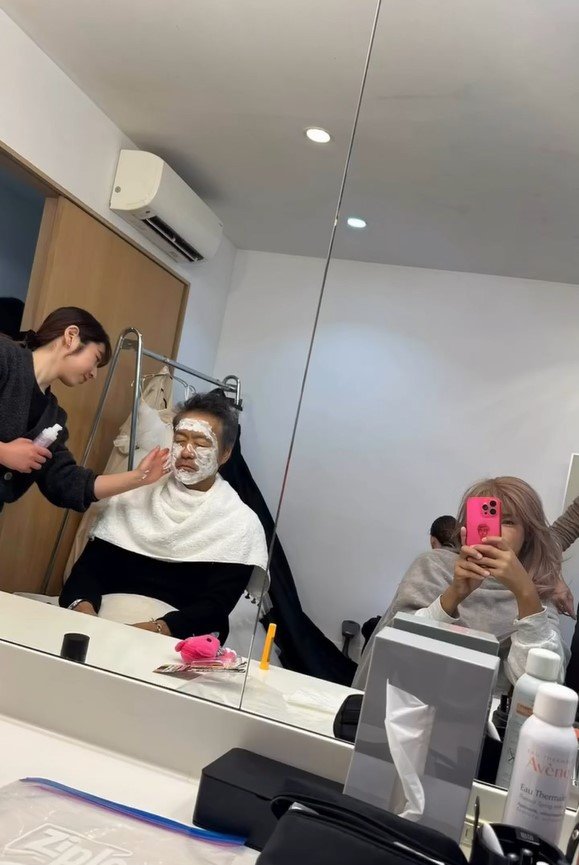 アンナさんはヘアを、世継さんは顔にクリームのようなものをたっぷりと塗られ、これから撮影に向けた準備を始めるようです。