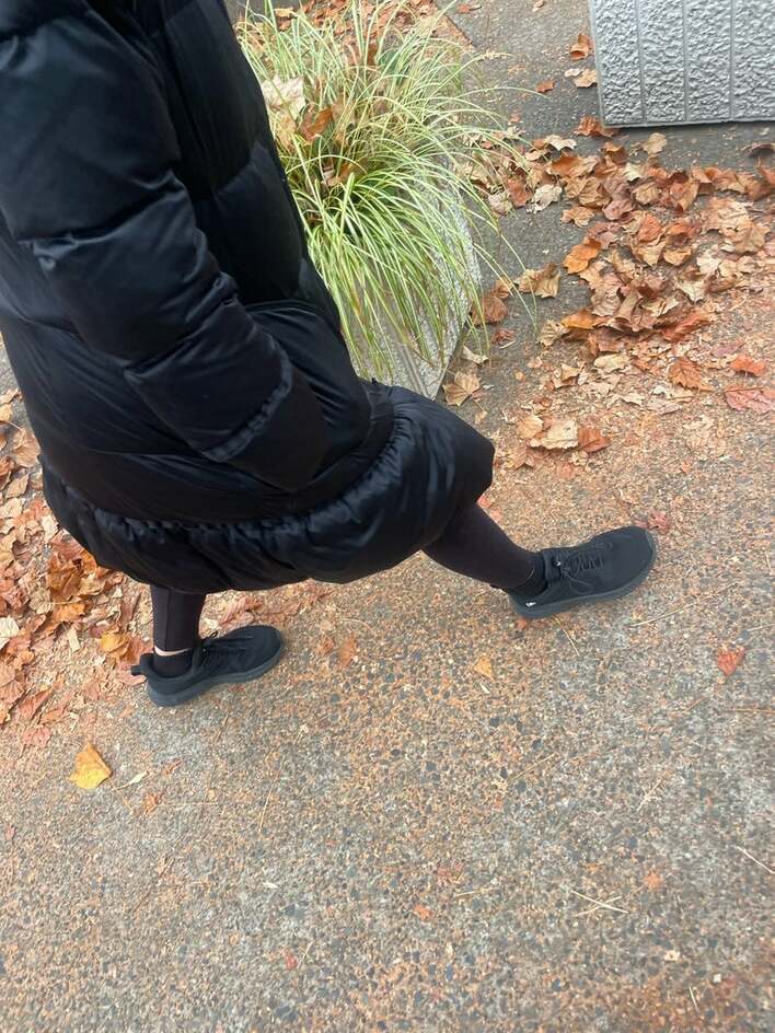 温かそうなダウンコートに包まれ、落ち葉が散る舗道を市川さんと並行して歩いている麗禾さん。