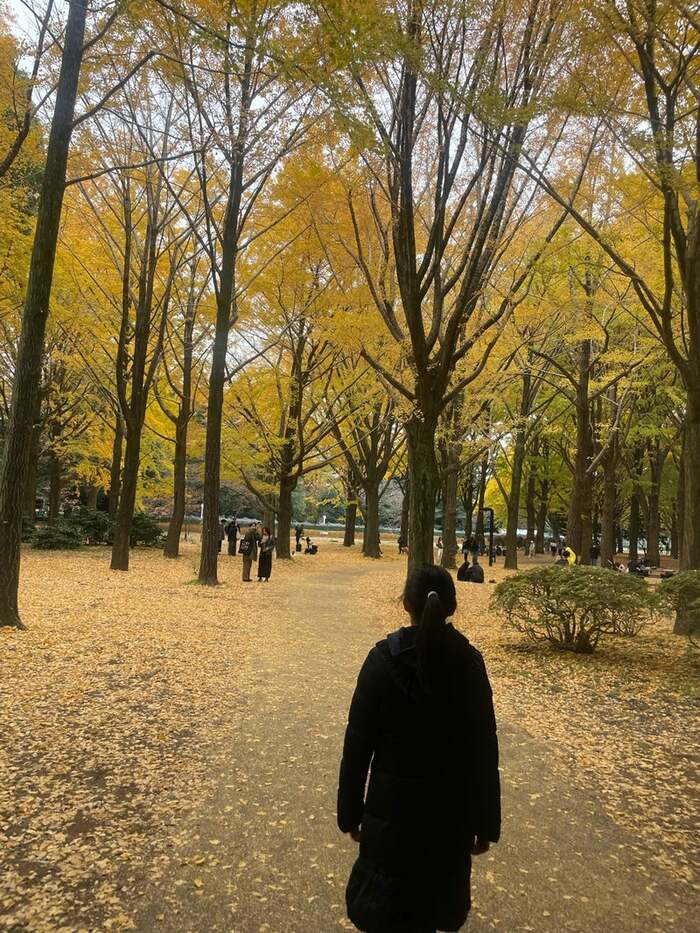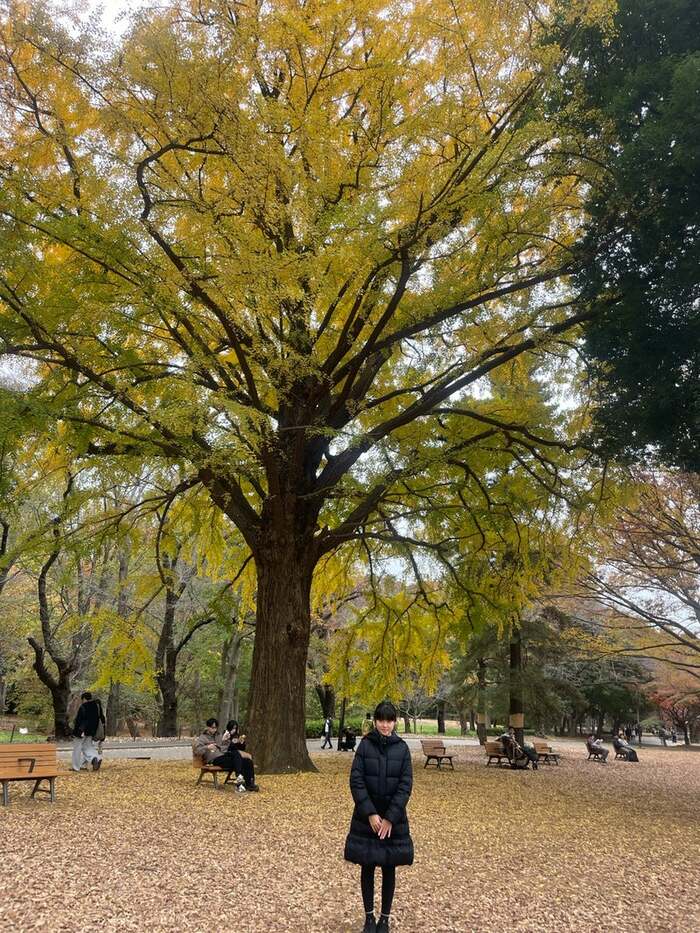 そして、黄葉の並木道を歩いている後ろ姿ショットも披露。並木道の両側には高い木が等間隔に並び、地面には落ち葉のカーペットが広がっています。遠くには他の散策客の姿も見え、のどかな雰囲気が伝わってきますね。市川さんは「なんでもない時間が、とても幸せ」「癒しの時間。」などとつづっていて、見ているこちらまで穏やかな気持ちになり、心がほっこり温かくなります。