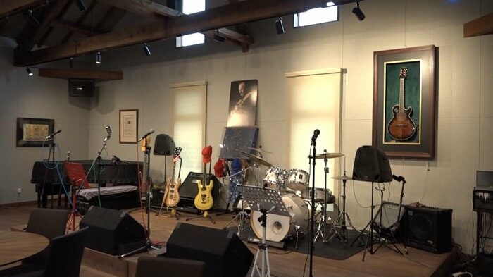 さらに、室内にはバンドが演奏できるステージとたくさんのお酒が並んだバーカウンターも完備。ゴルフを通じて街の人と交流する場にもなっているといいます。