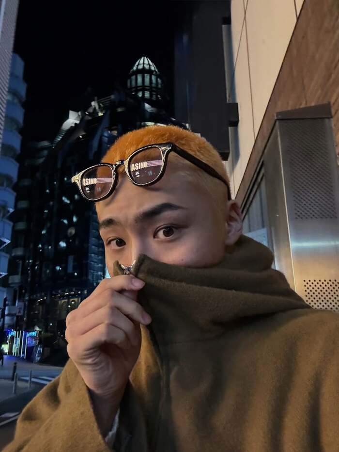 ツンツンした丸刈りのオレンジ色のヘアスタイルで、余すところなくピタっとフェイスパックがお顔に張り付いている様子がなんともシュールで、思わずクスッと笑いがこみ上げてきてしまいます!