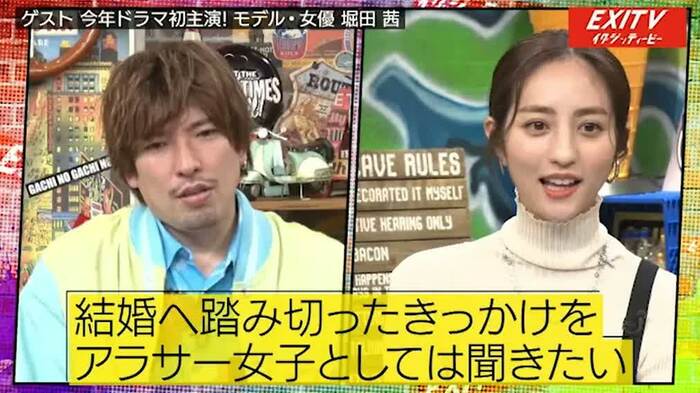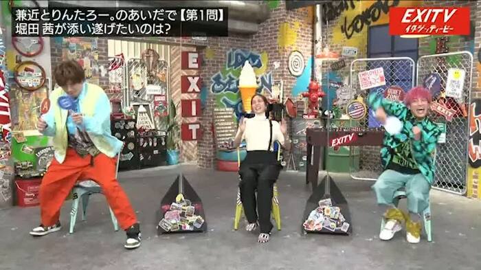 ドラマ特別企画として「兼近とりんたろー。のあいだで」と称し、EXITの2人のどちらと添い遂げたいかを堀田さんに選んでもらうことに。