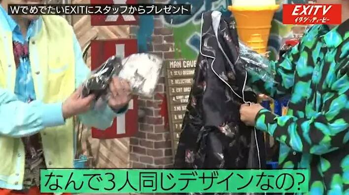 りんたろー。さん、本郷さん、そして兼近さんへ3人おそろいのパジャマが贈られると、「なんで3人同じデザインなの?」とりんたろー。さんは大笑いし、兼近さんは「これうれしいね」と笑顔を見せていました。
