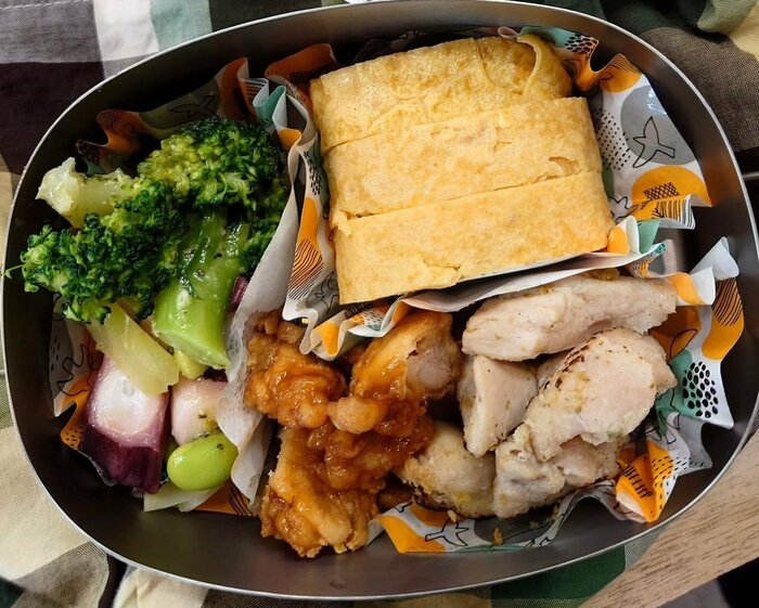 おかずはというと、唐揚げやさっぱり味付けのチキン。形がキレイな卵焼きや、ブロッコリーとタコを合えた副菜も用意していて、満足感を得られそうです。