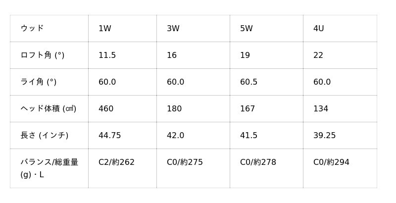 1W:Ti-811ボディ/鋳造+ZAT158フェース/圧延3W・5W・4U:SUS 630ボディ/鋳造+高強度カスタムスチール(455)フェース/圧延