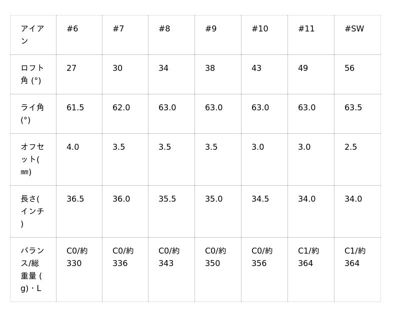 番手ごとに最適な重心設計を施し、理想の弾道へ導きます。