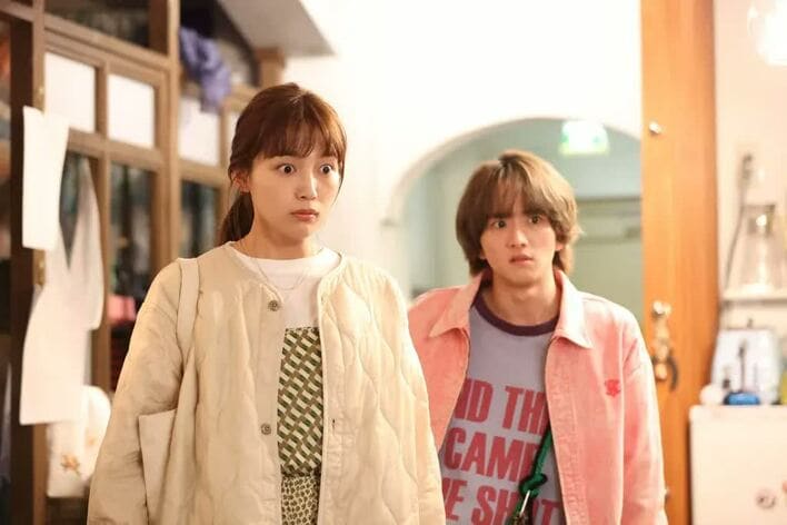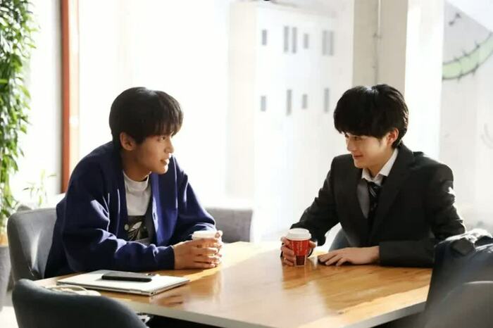 青羽紬(川口春奈)の家で鉢合わせした佐倉想(目黒蓮)、戸川湊斗(鈴鹿央士)、紬の弟・光(板垣李光人)。