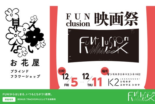 今回開催するイベントは、多様な文化が軽やかに混ざり合う街・下北沢を舞台に 、「FUNclusion 」を体験いただける数々のコンテンツを用意。どなたでも自由に参加することができ、アート展示、映画祭、トークイベント、ワークショップなどを通じて、多様な人々が互いの違いを尊重し、自然と混ざり合う場をつくります。そして、「FUNclusion」な体験をきっかけに、一人ひとりの中にある“あたりまえ”が少し揺さぶられ、世界の見え方が広がっていく--。そんな瞬間が生まれることを願っています。
