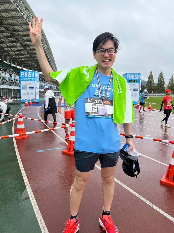 マラソンを日課としているというお笑いコンビ・東京ホテイソンのたけるさんは、11月9日に開催された「おかやまマラソン2025」に出場。フルマラソンを見事完走したことを報告しました。