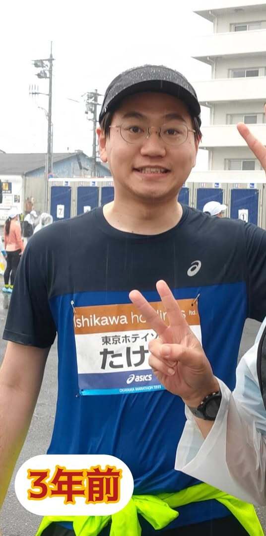 マラソンを日課としているたけるさんがフルマラソン完走とともに3年前の写真を公開し、その大変身を遂げた姿に反響が寄せられています。