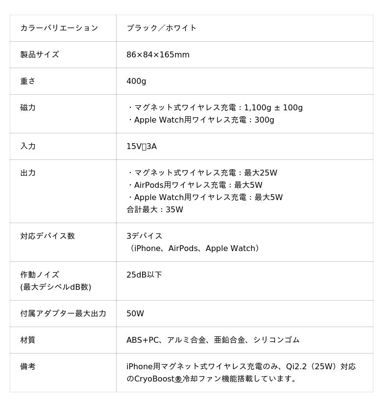 製品名:ESR CryoBoost(R) 3-in-1 マグネット充電ステーション(25W)