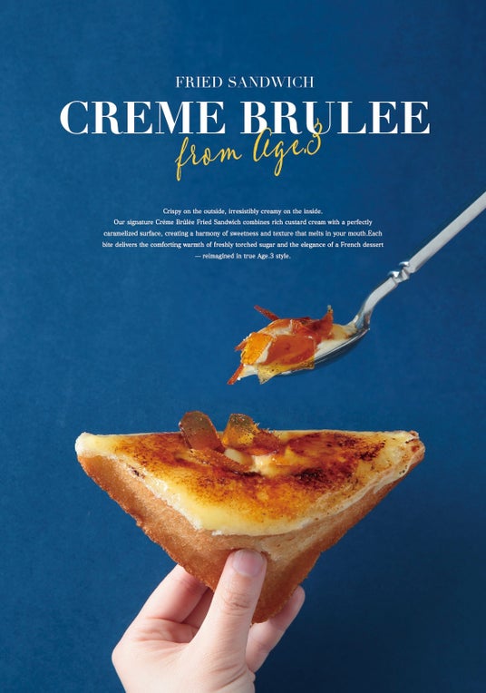 2023年には、新感覚スイーツ『揚げサンド』の専門ブランド「Age.3(アゲサン)」を立ち上げ、銀座一丁目に1号店をオープン。外サクッ・中モチッの独自食感と低糖質生ホイップが話題を呼び、TV・Web・SNSに多数取り上げられる。最大2時間待ちの行列店として話題を集めた。
