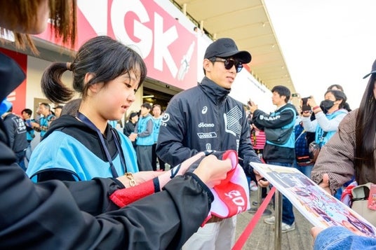 ピット前にはたくさんのファンが集まり、子どもたちはスムーズにファンサービスができるように「ここにサインをお願いします!」と選手に声をかけながら、一生懸命にお仕事をこなしていました。