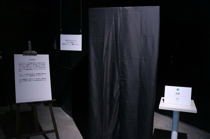 天井からぶら下がっていた説明を見ると「直射日光に当ててはいけない絵画です。暗闇の中に入り、ご鑑賞ください。」と記載されています。