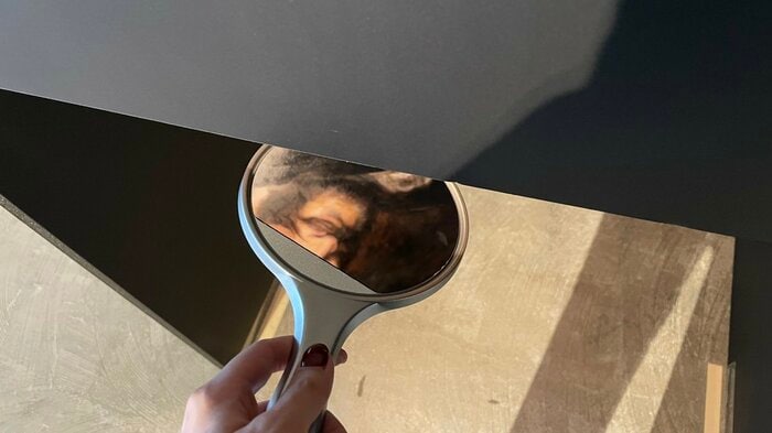 そこには、隙間が空いた黒のボックスが登場します。近くには…手鏡?