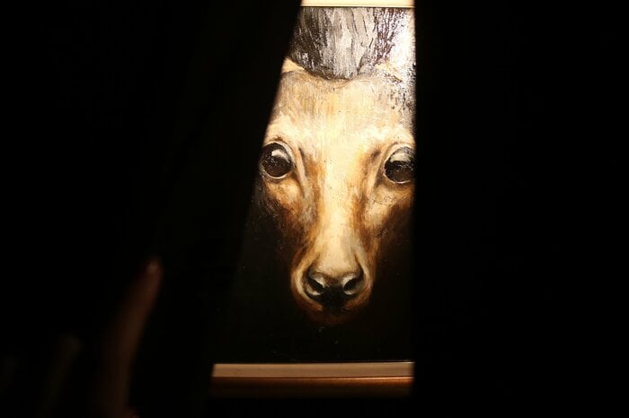 リアルな鹿の顔が描かれた絵が飾られていて、大きな瞳と長く目を合わせていられません…。