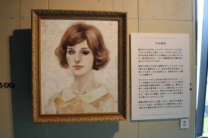 優しげな笑みを浮かべる女性の、目元部分だけが鏡面で仕上げられた絵画など、紹介しきれないほどの作品が展示されています。