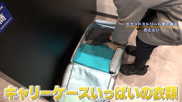 70代の女性が持ち込んだキャリーケースいっぱいの衣類。何年も前に夫のために買ったものの、中には一度も着ていない服もあるといいます。
