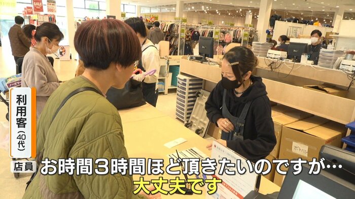 スーツケースや段ボールなどを大量に持ち込んだ姉妹とその母親。新生活のため着なくなった服などをフリマサイトで売りに出したものの、あまり売れなかったため、店に持ってきたといいます。