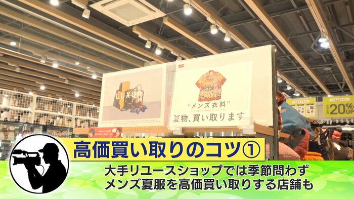 セカンドストリートによると、服を持ち込む際は、そのシーズンの物か次のシーズンの物を持ち込むといいそうですが、在庫が不足しがちなメンズの夏服は、時期を問わず高い値が付きやすいといいます。