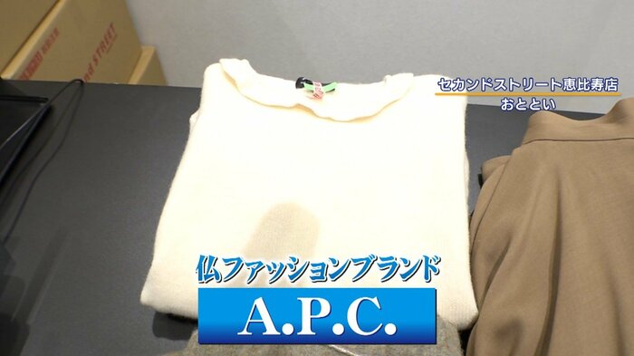フランスのブランド「A.P.C.」のセーター。カシミヤなどの上質な素材が使われており、このような品は購入したのが10年以上前でも、高い査定が期待できる場合があるそうです。