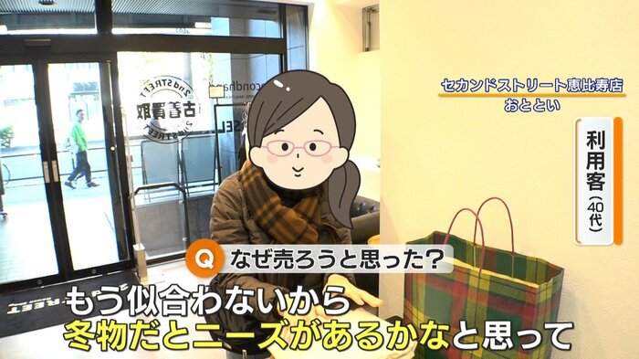 10年以上着ていたセーターなど衣類3点を持ち込んだ40代の女性。「自分にはもう似合わないから」と持ってきたといいます。