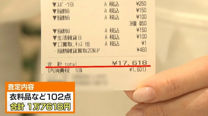 衣類品など102点が入った4箱分の査定額は…1万7618円。