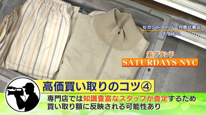 持ち込まれた衣類の中には、イギリスのブランド「AQUASCUTUM」や、アメリカの「SATURDAYS NYC」など様々な国のブランド品が入っていましたが、専門店ならこうした商品も適正に査定できるので、買い取り額が高くなる可能性もあるといいます。