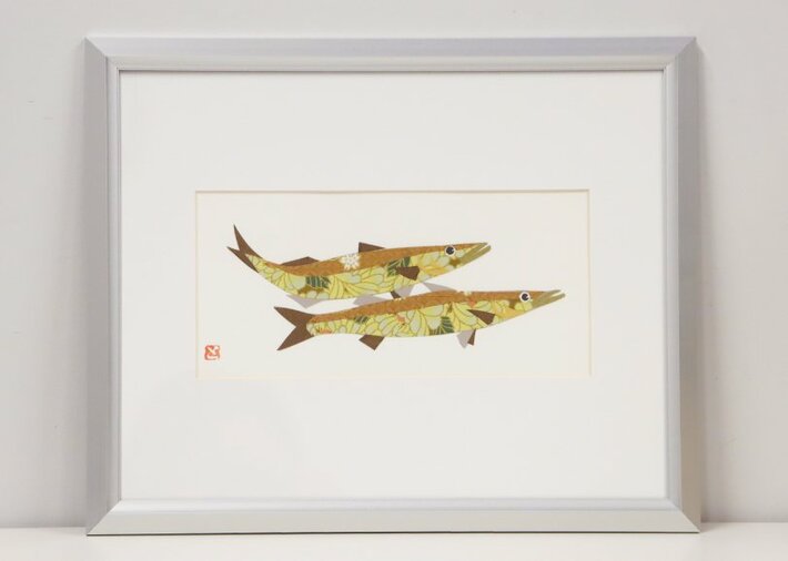 色とりどりの千代紙を使い、魚たちの美しさを表現しています。実際の色彩とは異なりますが、骨格やヒレの形といった特徴は正確に捉え、一目でその魚だと分かるようこだわった作品です。この原画展を通じて、魚たちが持つ本来の美しさや、アートとしての魅力に触れていただければ幸いです。