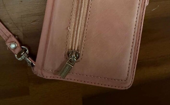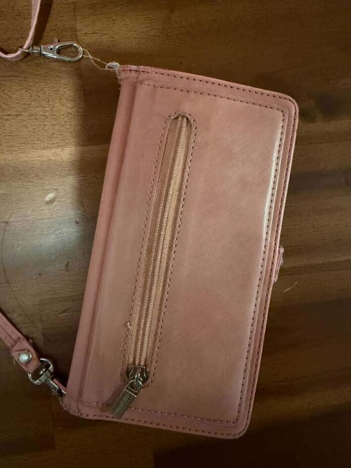 淡いピンク色で手帳型のスマホケースを使っていた川村さん。