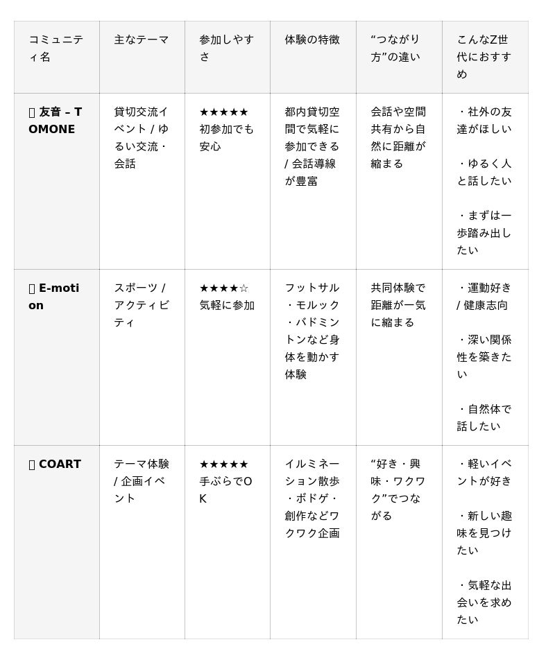 現代のZ世代・同年代が社会人になると『同年代と気軽に繋がる場が著しく減少する』という課題を抱えていることがあります。SNSや検索で「社会人サークル」や「友達作りイベント」「東京 交流会」を探しても、