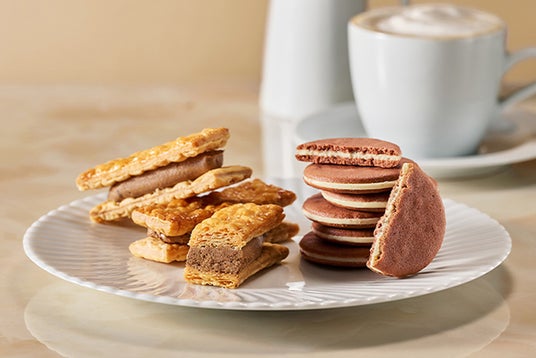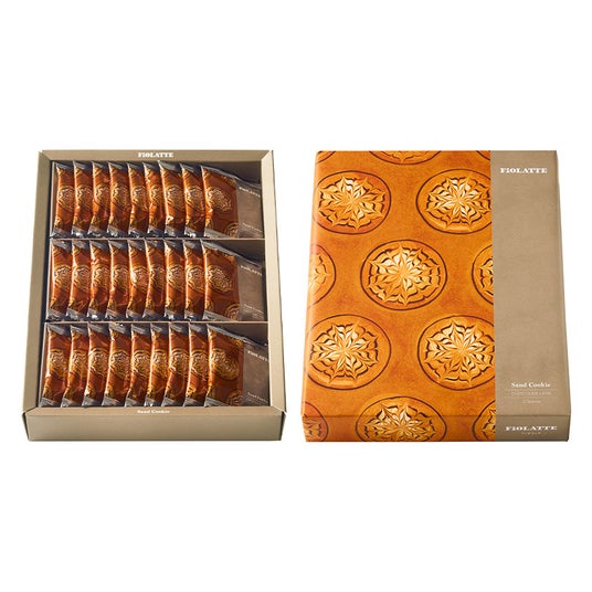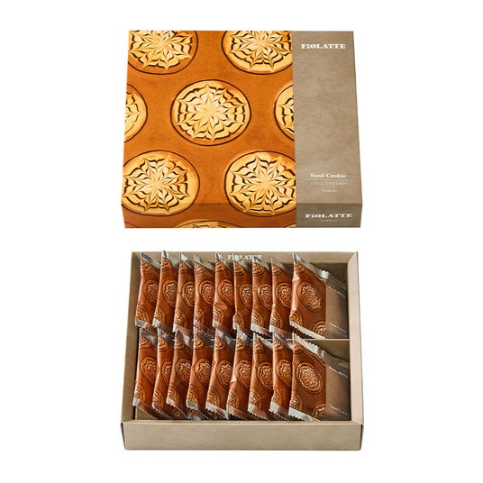 ショコラを生地に練り込み、隠し味にコーヒーを加えて甘さひかえめに仕上げたクッキーで、 ホワイトミルクのチョコレートをサンドしました。ショコララテのようなチョコレートの濃厚な甘さとミルクのクリーミーな味わいが広がるクッキーです。