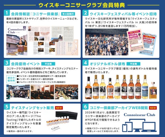 ウイスキーコニサー資格取得者で、コニサークラブへの入会を申し込み、年会費6,600円(税込)をお支払いいただいた方を「コニサークラブ会員」といたします。会員特典として年4 回発行の会報誌の送付に加えて、ウイスキーフェスティバルへの招待、限定イベントの参加権利や限定ボトルの購入権といった特典を用意しています。https://whiskyconnoisseur.jp/club/(ウイスキーコニサークラブHP)