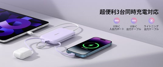 出張でも、休日の小旅行でも、もうモバイルバッテリー用に追加のケーブルを用意する必要はありません。